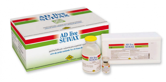 Caracteristicas: AD Live Suivax é uma vacina viva atenuada contendo a estirpe de LomBart do vírus da Doença de Aujeszky. A estirpe de LomBart é deletada na glicoproteína gE, o que permite distinguir os animais vacinados dos animais infetados com o vírus selvagem, utilizando métodos serológicos adequados.